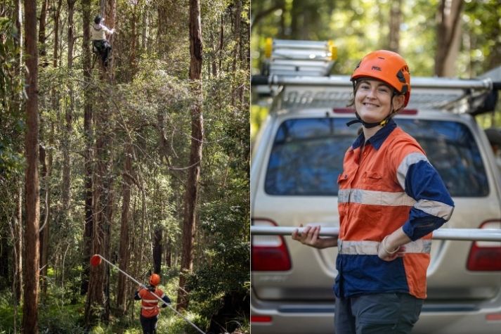 Environmental Project Manager, Indigo Kuss-Patterson lending a helping hand for the climb-and-flag technique. Photo credit: Josquared Photography.