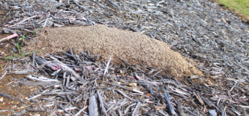 - In warmer temperatures or periods of drought fire ant nests look like small patches of loose soil.