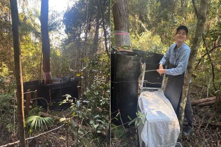 Environmental Project Manager, Indigo-Kuss Patterson setting up a specially designed trap to safely capture a koala.